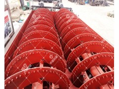 螺旋洗砂机出沙带水,可在螺旋洗砂机的后部,将洗砂废水直接排到直线脱水筛筛面上来回收流失砂。适合用于颗粒度较小的物料,如细砂、尾矿、尾料的脱水干排设备,主要用于铁矿、铜矿、金矿、铝矿、尾矿脱水。