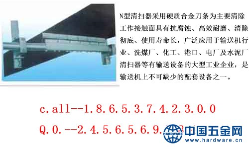 N型清扫器采用硬质合金刀条为主要清除工作接触面有抗腐蚀、高效耐磨、清除彻底、使用寿命长,广泛应用于输送机行业、洗煤厂、化工、港口、电厂及水泥厂清扫器等有输送设备的大型工业企业,是输送机上不可缺少的配套设备之一。