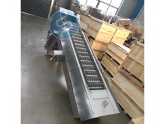 整个格栅部件直接安装在渠道上,水中的固体物由网板串接成的滤带捕获,送至除污机驱动装置后部的较高位置后排出。同时一个旋转的刷子还对网板进一步清洁。网板式阶梯格栅除污机的机架为采用不锈钢板与型钢焊接成一整体式刚性结构,焊接后的清污机机架为一刚性整体,并具有足够的强度和刚度,在规定水位差的工况下不发生扭曲变形现象,机架材料全部采用不锈钢,二侧板间隔一定距离设置横撑,保证设备安全可靠运行。焊接后的格栅机架为一刚性整体,具有足够的强度和刚度,在1.0米水位差的工况下不发生扭曲变形现象。机架的两侧与格栅井之间留有间隙,通过机架的两侧橡胶封板来防止漂浮垃圾通过。机架二侧设置安装连接支座,与基础平台之间用膨胀螺栓安装固定。