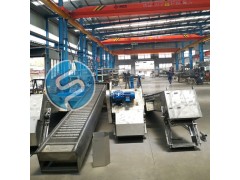 耙齿链运转到设备的上部时,由于槽轮和弯轨的导向,使每组耙齿之间产生相对自清运动,绝大部分固体物质靠重力落下。另一部分则依靠清扫器的反向运动把粘在耙齿上的杂物清扫干净。