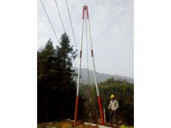 我公司生产的人字立杆机(又叫人字拔杆、人字抱杆、人形抱杆拔杆),该款立杆机是山地施工比较常见的一种设备,这种设备的优点是轻便灵活,并且还可以做成分体两节的,这样就解决了山地施工不好运输的现象,并且因为比三角立杆机少一根副杆,所以成本上比三角立杆机少, 后期购买的时候价格会比三角立杆机优惠点,另外这种立杆机起立方式也挺简单,先把两根杆体立起来,然后在杆体的左右各打一根拉线,这样就可以保持拔杆垂直站立了,然后在通过手摇绞磨把起重滑车放下来,绑缚到相应线杆的位置,然后转动手摇绞磨缓缓的把线杆起来。从而完成施工。