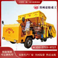 单缸喷浆车是混凝土喷浆车的一种,也叫一拖二喷浆车或着双料斗喷浆车,也被行业内称:液压喷浆车、全自动喷浆车等,型号是JPA-S 7m³×2 它是我公司根据国家基础设施建设的需要而开发的一种新产品。本产品可同时供两台喷浆机工作,喷浆机的型号规格可任意选择。单缸喷浆车可广泛适用于大垮度遂道施工,具有高效、人性化的特点,取代了传统的人工上料施工模式,尽量的节省了劳动力,避免了人工上料杨尘对施工人员的伤害,同时避免了人工上料时未硬化工作面上物料残留造成的浪费。本产品,技术成熟,功能完善,操作简单,维护保养方便,无易损件,可尽量的降低施工成本。