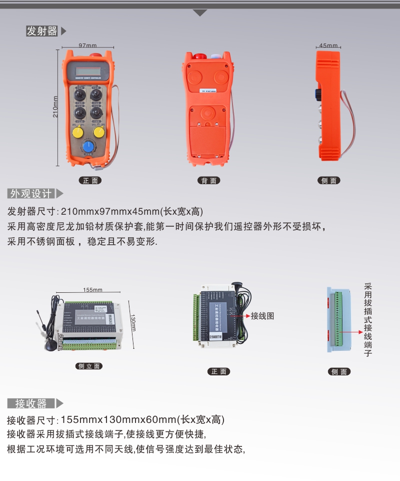 5. 遥控器面板采用不锈钢材料,更能适应工况环境