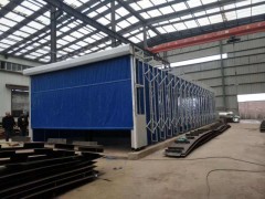 2.伸缩移动喷漆房采用两边同时驱动,互相连锁,安全限位控制,可沿着地面铺设的轨道前后自如伸缩移动,机械运行安全平稳。