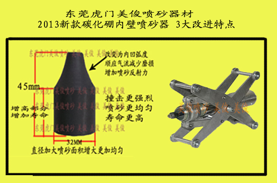东莞虎门美俊喷砂器材生产的管道内壁喷砂枪,根据客户使用磨料的不同,灵活应用有针对性的材料