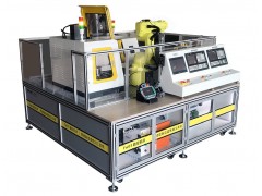 三坐标机械手臂从原材料仓库取出原材料到传输线上,RFID系统读取数值,由传输线运送到6自由度工业机器人端,由负责数控机床的上下料工作,数控车削单元将零件加工完毕后,机床自动开门,零件由机器人送置到数控铣削加工中心进行加工下一道工序,加工完毕后铣床自动开门,由机器人取出成品零件送置到传输带上,输送到智能仓库端,由三坐标机械手臂将成品零件入库,RFID系统读取数值。学生在熟练掌握该系统的操作与编程以后,也可以对零件类型和加工工艺进行调整。