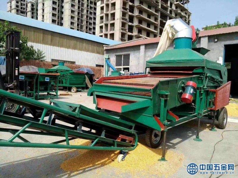 本机是将风选和筛选完美组合一体的组合机械,集风选和筛选的优点于一身,两者结合达到清大杂、小杂、泥灰的目的,并可将大杂、小杂、泥灰分类出料,也可调换筛片适应处理各种大小颗粒的种子、豆类的要求。大的杂质会留在一层筛网中,通过振动电机,把杂物振到杂物出料口,需要筛分的物料会漏到下层筛网中,进行下一层筛网→二层筛网,网目比较小,也就是清除粮食机的小块杂质,筛网网孔比需要筛分的物料大,物料漏不下去,会随着振动电机的的动力送到抛投部分→抛投部分上面已经讲过动力和效果了,抛投高度3米左右,抛投距离是8-12吨,抛投过后可以进行人工灌包,入库,或者利用输送机进行装车。该机省去了不必要的输送机设备的投资,占地小,移动方便,便于维修!可谓是收购站的好帮手!