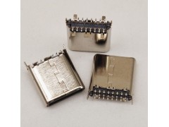 Type-c 16P公头SMT 立式贴片 180度 短体8.5mm 带固定脚 外壳有边