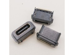 Type-c 16P母座防水 贴片SMT 垫高 带柱 四脚插板式 单排贴板.
