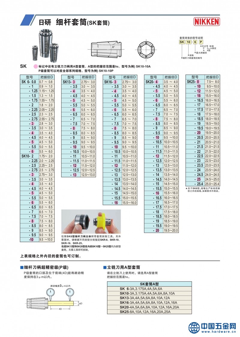 日本NIKKEN日研高精密筒夹SK10弹性夹头尼肯SK6日研NIKKEN筒夹