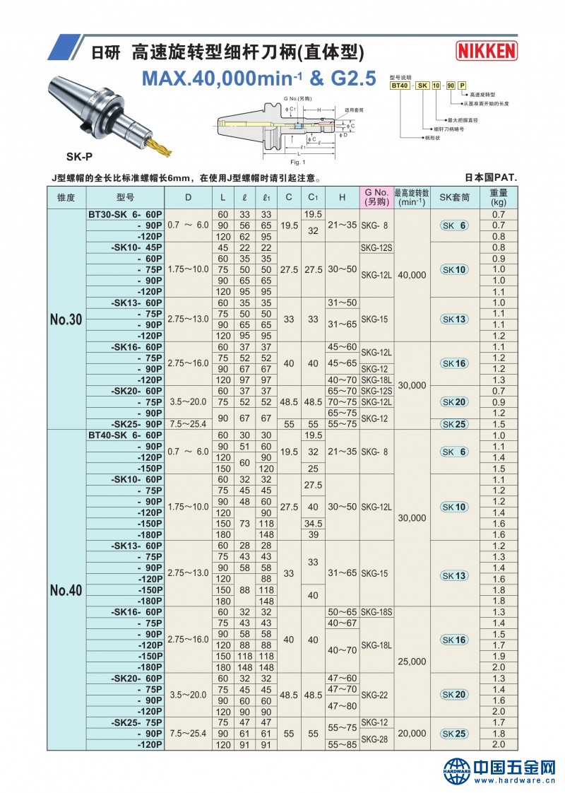 日研NIKKEN高速旋转型细杆刀柄进口SK刀柄高精度日研SK刀柄