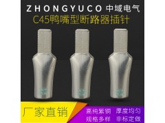 浙江中域电气有限公司,鸭嘴型C45插针,适用于DZ47系列断路器开关,配电装置中导体与电气设备间的连接。表层镀锡,增加导电性,抗氧化。规格:C45-4至C45-95平方。 PS:目前铝线或铜线直接接在电器端子上,产生电流流失,时间久了,容易发黑氧化,导致电阻增加,导电性不良(接触不良)产生高热甚至烧毁,重则引发火灾,造成人民生命和财产损失。 NEWS:浙江中域电气有限公司专门针对小型断路器,塑壳断路器,电能表等电器接线,生产出了断路器专用铜铝鼻子,C45铜铝插针。特别推荐小头窄边的铜铝鼻子,铜鼻子,解决了原有铜端子头宽不好安装的问题。 这些产品质量卓越,经大批量投入市场使用,广大客户,国网,南方电网等电力部门一致认为小头铜铝鼻子系列产品接触好,不松动,不发热,安装方便,无需维修,安全畅通,减少很多人工成本,值得推广使用。