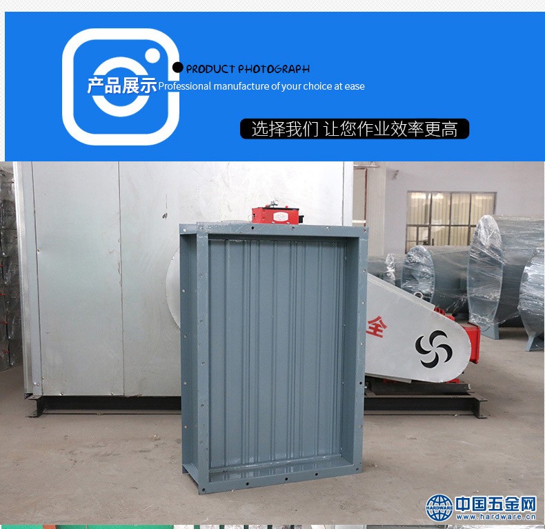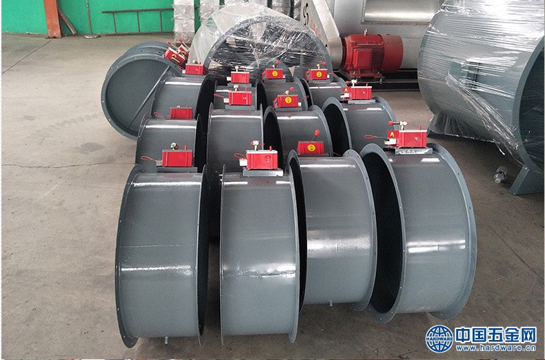 .弹簧式防火调节阀。防火阀的作用是:当烟气温度达到280℃时,人已基本疏散完毕,排烟已无实际意义,而烟气中此时已带火,阀门自动关闭,以避免火势蔓延。弹簧式防火调节阀有矩形和圆形两种。