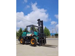 底盘强大的越野叉车,用于机场、码头、车站等路况条件较差的物资集散地装卸物资的设备。它具备普通越野车良好的机动性与越野性,又具有普通叉车的工业实用性,可以说是一个强大的组合体。越野叉车的速度要高于普通叉车,足见其机动性为了更好的适应工作环境,越野叉车本身也是具特色。车身宽大,能承载不规则和宽大的货物;离地面间隙大,是为了方便跨越场地上的障碍物;四驱功能,则是为了保证在泥泞的场地工作正常,优化工作装置,卸载高,大掘起力,卸料自动放平,作业效率高,油耗低。