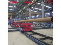 利用电机减速机,通过剪刀叉升降机构,驱动整个机架升降,从而实现管子上下升降,以适应固定中心标高的坡口机的坡口加工要求。通过滚轮回转,实现焊机及坡口机工作中管子从动的作用。