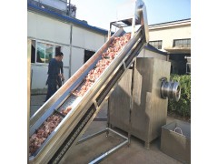 多功能绞肉机适用于各种冻肉、鲜肉、鸡骨架、鸭骨架、猪皮、牛皮、鸡皮、鱼类、水果、蔬菜等。广泛适用于各种香肠、火腿肠、午餐肉、丸子、咸味香精、宠物食品和其他肉制品等行业。可将冻盘/大型冻盘肉直接绞碎,设计多种孔板组合,更适合不同肉制品的要求。工作时利用转动的切刀刃和孔板上孔眼刃形成的剪切作将原料肉切碎,并在螺杆挤压力的作用下,将原料不断排出机外。可根据物料性质和加工要求的不同,配置相应的孔板,即可加工出不同尺寸的颗粒,以满足下道工序的工艺要求。