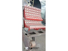 双面调头板锤磨损过程:当**次单面调头使用时,两个棱角磨损到约30mm,则可以换面调头使用,其余两个棱角也磨损到约30mm,*后结束板锤的使用寿命,从而实现两次换面调头使用功能。这种板锤的使用寿命提高到2个月,破碎量增加到20000t。