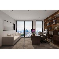 追求一定的设计感,材料档次相对高级。单一颜色较便宜的地毯可以换成拼花、花纹、脚感较好的地毯。墙面可以做纯木饰面或切割出有设计感的造型,也可以使用灯带。独立办公室可以采用木质定制柜,与环境更统一。
