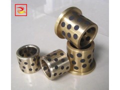 石墨铜套又称自润滑轴承,是在铜套作为金属基体的摩擦面上开发出排列有序、大小适当的孔穴,并嵌入石墨或二硫化钼等作为固体润滑剂的一种具有自润滑性能的产品,一般固体润滑剂占摩擦表面积的20-30%。
