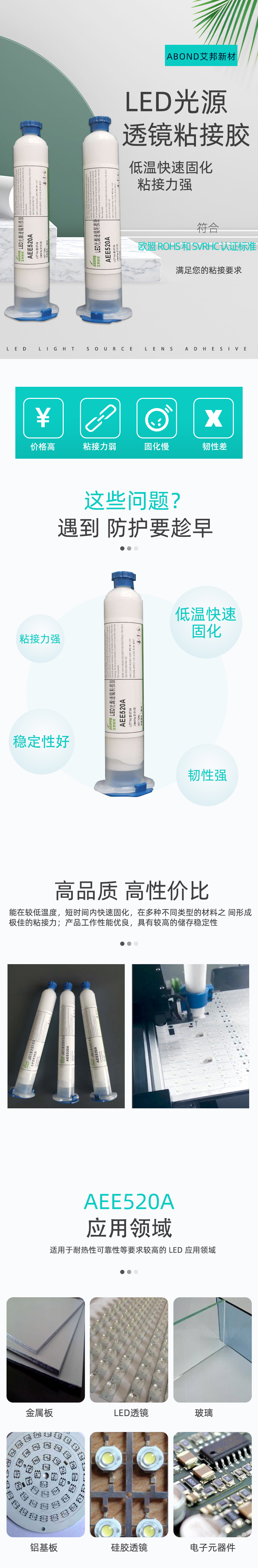 LED光源透镜粘接胶低温快速固化粘接力强铝基板灯珠粘接