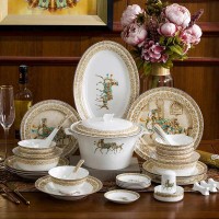 景德镇市合元陶瓷厂家生产多种款式陶瓷餐具套装,有家居餐具套装,活动餐具套装,餐具散件批发等等,餐具配置有20头28头56头60头68头等等可自由选择不同价格配置作为礼品赠送。而且景德镇合元陶瓷厂家生产的陶瓷餐具可以根据要求在餐具碗盘碟上印制logo文字,设计图案或者在包装盒上印logo文字。景德镇生产的陶瓷餐具瓷质以骨瓷为主,瓷质细腻,高温烧制硬度强颜色艳丽不褪色。健康。
