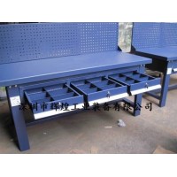 工作台适合于模具、检测、维修等各种不同应用场合,具有良好的耐腐蚀性,耐脏性,抗冲击性和承重能力强。桌面经特殊处理,具有防腐、抗冲击力强等特点,多种桌面的选择,可配合不同的使用要求;所配置的抽屉、柜门方便使用者存储工具;桌角上预留电源孔,方便安装电源插座。工作台(桌)分为轻型(可承重300公斤),中型和重型工作台(桌)可承重1000公斤及特制的工作台。可根据需要灵活地配置各种吊柜、单柜、双柜等,可加装挂板,电器板,灯顶板、调节脚杯,轮子,搁板等桌上部件,具有多种选择,能够满足各种工位的需求。