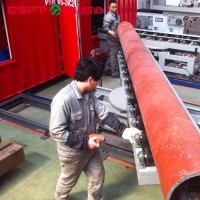 1、利用电机减速机,通过链条链轮机构,驱动V型辊轮回转。利用V型辊轮和管子间
