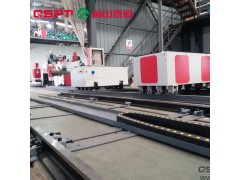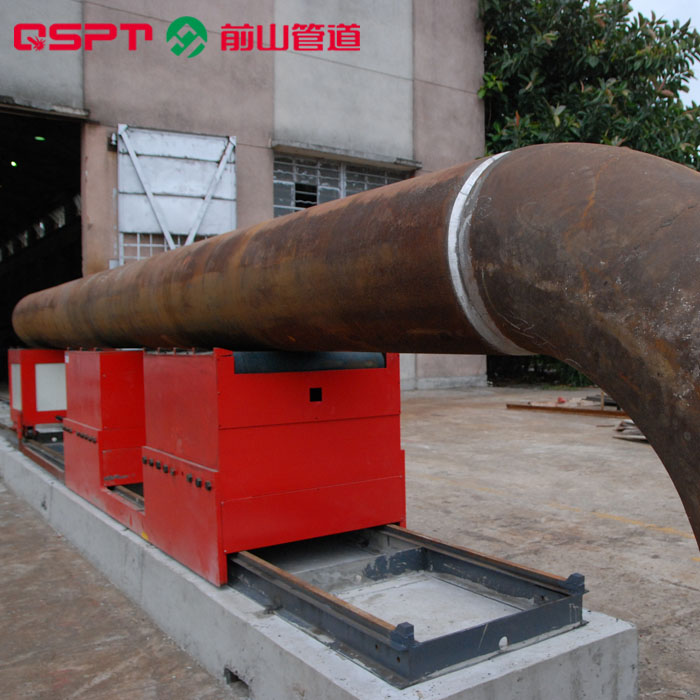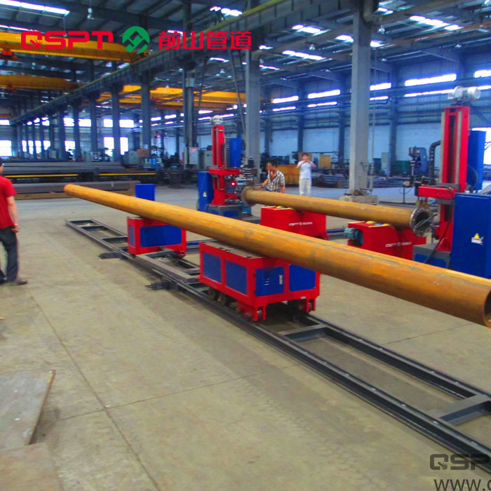 该设备名称为:管道预制电瓶输送系统,这是一款承载可达30吨重量管道的输送设备,该设备减少了对行吊的依赖,大大提高物流效率。