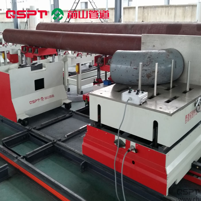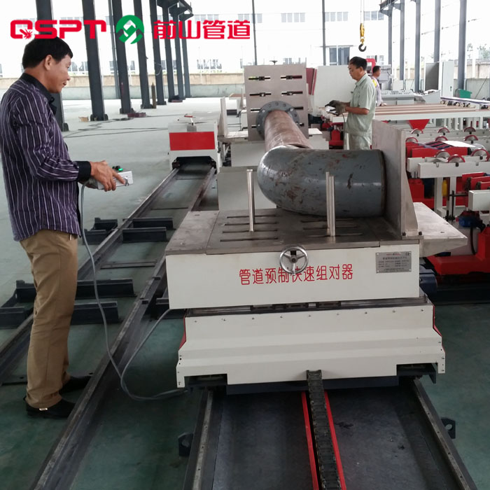 1、利用支撑小车的V型块支撑和定位管子,确保管子的上下水平度和左右平行度;