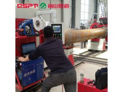 管子-法兰组对:利用组对器上安装的卡盘来承受重量和确保管子-法兰的垂直度,利用组对小车前后移动(手动)调整管子-法兰的组对间隙,利用蜗轮丝杆升降机构上升下降(电动)调整管子-法兰的上下错边量,利
