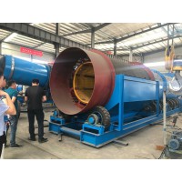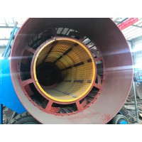 清洗筒体被四个拖轮支撑,电机带动减速机,大小齿轮带动清洗筒体低速旋转。含有泥团和石粉的矿石自进料口给入,进入旋转的滚筒内,被清洗滚筒内安装有角度的耐磨橡胶衬板不断带起抛落,自进料端到出料端移动过程中多次循环,并被顺向或逆向的冲洗水冲涮洗涤,清洗干净的矿石经提升器提升卸入双层锥形筛,分成粗、中、细三个粒级分别排出。含有污泥的废水则通过出料或给料端的带孔挡板流出。