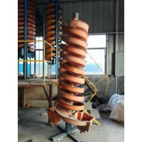 璃钢螺旋溜槽是综合了螺旋选矿机、螺旋溜槽、摇床、离心选矿机的特点的设备,是采矿、选矿的*佳设备,特别是海滨、河畔、砂滩、溪道的砂矿开采更为理想。产品具有结构合理,安装简单,占地面积少,操作简易,选矿稳定,分矿清楚,处理量大,效率高选矿富集比高、回收率高,运转可靠的特点。具有重量轻、防潮、防锈、耐腐蚀,对给矿量和浓度、粒度、品位的波动适应性强,无噪音等优点。