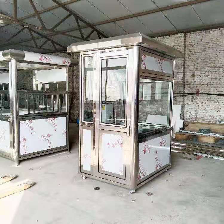 1、不锈钢岗亭主体骨架采用优质不锈钢焊接,强度高,抗风压;岗亭室内顶部为豪华PVC板,地板为花纹铝板或复合地板;顶部材料采用特殊防水铰接工艺,彻底解除漏水之患;岗亭配有日光灯、电源插座,桌面,电话插座,方便使用;岗亭内墙板为铝塑板或高档装饰板,颜色可自由选择;