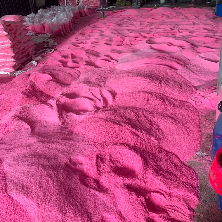彩砂现分为天然彩砂、烧结彩砂、临时染色彩砂、永久染色彩砂。其特点是:颜色鲜艳、耐酸碱、耐紫外线、不褪色。 天然彩砂:是由天然矿石粉碎而成,不褪色但是杂质色较多;临时染色彩砂:颜色鲜艳、易脱色。