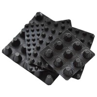 蓄水排水板pvc排水板抗压强度大,它的抗压强度是同等厚度ps卷材的1.5倍,hdpe材料的2.5倍。厚度0.7mmpvc材料h20排水板抗压强度在300kpa以上,而同等厚度ps和hdpe材料抗压强度只有150kpa左右。由于加强筋设计结构一般情况下轿车在上面直行不会压扁任何一个支撑柱。这是其它ps和hdpe材料无法达到的既能粘接又能烫接。由于pvc材料是非晶体结构,采用特种胶水能有效破坏材料表面结构从而使二层膜能有效的溶合在一起,使施工完成后起到防水隔根功能。同时也可用机械烫接。二次防水功能,排水卷材铺设完毕由于采用粘接或烫接形式,从而形成一个新的防水层,即有排水功能又有二次防水功能。疏水板打设时回带长度不得超过500mm。
