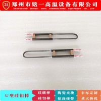 U型硅钼棒是由一支U型发热端和两支冷端经过特殊工艺高温焊接而成,具有耐高温急冷急热易安装,密度高发红均匀电阻一致,环保节能工作时间长,升温快规格齐全,非标定制发货周期短等优势,郑州市铭一高温设备有限公司是生产高温电炉加热元件硅碳棒,硅钼棒,不锈钢陶瓷夹,铝编织连接带22年的生产厂家。