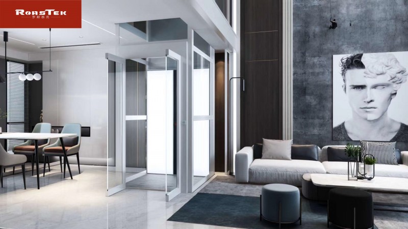 电梯更小占地860X960mm,内部使用尺寸800X560mm,可乘坐2-3人,空间利用率可达71.7%。