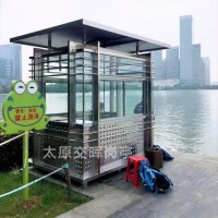 产品特点 1、岗亭材质表面经特殊工艺加工处理,精工制作而成,款型别致,品种繁多,适用于各种通道关卡及停车场。 2、主体骨架采用不锈钢整体焊接而成,强度高,抗风压。 3、顶部材料采用特殊防水铰接工艺,解决漏水之患。 4、所有岗亭留有空调及其它电器电源插座,方便使用。可根据您的特殊要求设计制造出不同款式的岗亭。 产品材质 1、支撑柱 :采用不锈钢成型1/4圆柱焊接而成 2、框架:采用不锈钢成型方通焊接而成 3、圆弧裙边:采用不锈钢板成型焊接而成 4、外面板:不锈钢板 5、内面板 :不锈钢板 6、岗亭内壁:中间为方通架, 7、底座;底层为角钢架,中间为木板 表层为防滑铝板 或防滑铁板 8、内吊顶 :装饰板 9、外顶:中间为方通架,表层为不锈钢板 10、活动门:不锈钢板 11、活动窗:不锈钢板 适用范围 适用于收费、物业、高速公路、大厦、广场,小区、保安值班。