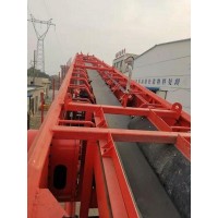 布料胶带机设计为单条可伸缩的(多节)四节叠套式桁架支撑的胶带机,由钢丝绳联动伸缩,摩擦轮驱动,偏心导向滑道,胶带通过改向滚筒多层叠绕,伸缩时可随桁架的叠套长度自动改变叠绕长度,使胶带总长度保持不变,偏心滑道可保证桁架伸缩时的准确对位。