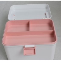 优选pp材质,表面光洁度好,具有抗冲击性,抗潮性,耐腐蚀性和不易老化。空间更大,更耐用,大容量装的更多,上下分层满足一般家庭的常备药品收纳,嵌入式折叠设计,适合手提,弧线曲度设计环节手臂酸痛疲劳,折叠设计微缝贴合,轻巧便携更时尚,使用方便,密封隔离,防潮避光,双层设计,分格收纳,双层空间分类存放,上层:急救用外伤药品及常用工具,下层:备用药品大小尺寸摆装药品