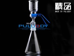 0903不溶性微粒制样装置 主要由专用隔膜真空泵和“PULL品牌”砂芯过滤器两部分组成。其中隔膜真空泵具有真空度大,流速稳定,压力可调;体积小,结构紧凑,重量轻,移动方便;可无油运行,干净无污染;可连续24小时持久稳定工作的特点。砂芯过滤器采用优质石英玻璃制造,透明度高,观察效果好,应力强度大,由圆筒形带刻度滤杯,砂芯滤器,特制卡夹及1000ml外磨口三角瓶四部分组成。整个装置连接严密,能承受热压消毒,法兰口均为精工平磨,具有良好的密合性能。