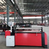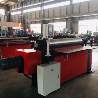 两辊卷板机为两辊对滚式弯板设备。主要用于在冷用进程中弯卷板厚0.5-6mm,宽度300mm-2000mm,屈服极限在350Mpa以下金属板园柱筒体。广泛应用于汽车,食品机械,电机,消防器械及其他等行业各种园柱筒体的制作,而二辊卷板机特点是具有制品精度高,无乘余直边,生产效率高等特点。精度误差小于0.5mm;效率可达400只/小时。原理:钢板在上辊(两辊)下辊(弹性辊)间通过上辊压迫,下辊弹性层成凹形状促使钢板弯曲,使得曲率成形。根据不同的结构形式和控制手段,决定了机器的能力和效率。