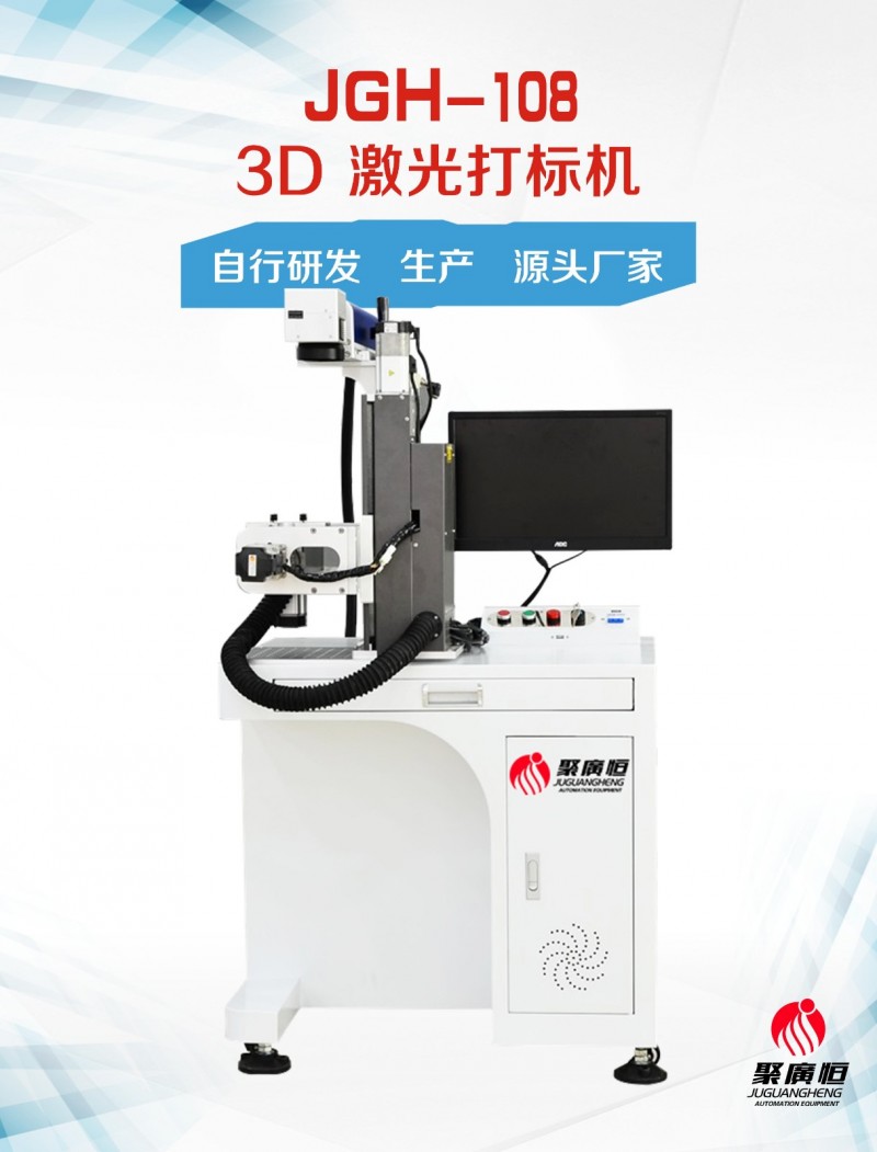 适用于三维曲面的各种金属或非金属产品的聚广恒3D激光打标机,广泛应用于精密机械、量具刃具、电工电器、立体电路、电子元器件、3C电子、电子通讯、五金饰品、五金工具、手机通讯部件、汽摩配件、模具、塑胶制品、医疗器械、建材管材等高精度产品雕刻。