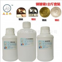 铜件→除油→水洗→活化剂清洗(浸泡1分-5分钟左右)→镀银剂(使用前把本品摇均匀再用,30秒—3分钟左右看到表面上色满意即可时间不能过长)→水洗→封闭(封闭剂兑水1:1-2倍使用)