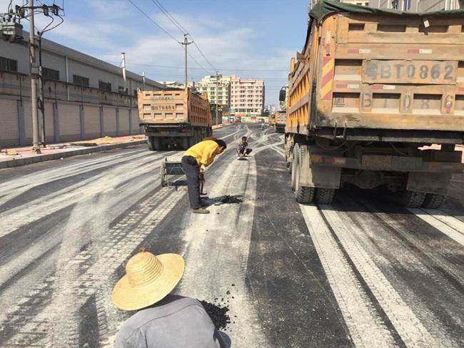 2、培路肩:恢复道路中心线及边线,人工在边线以外位置,培高30cm,宽150cm路肩,同时洒水湿润基层。