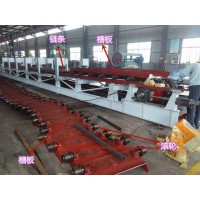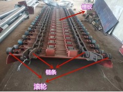 板式给料机运行部件由牵引链条,承载构件行走滚轮和输送槽板等组成。