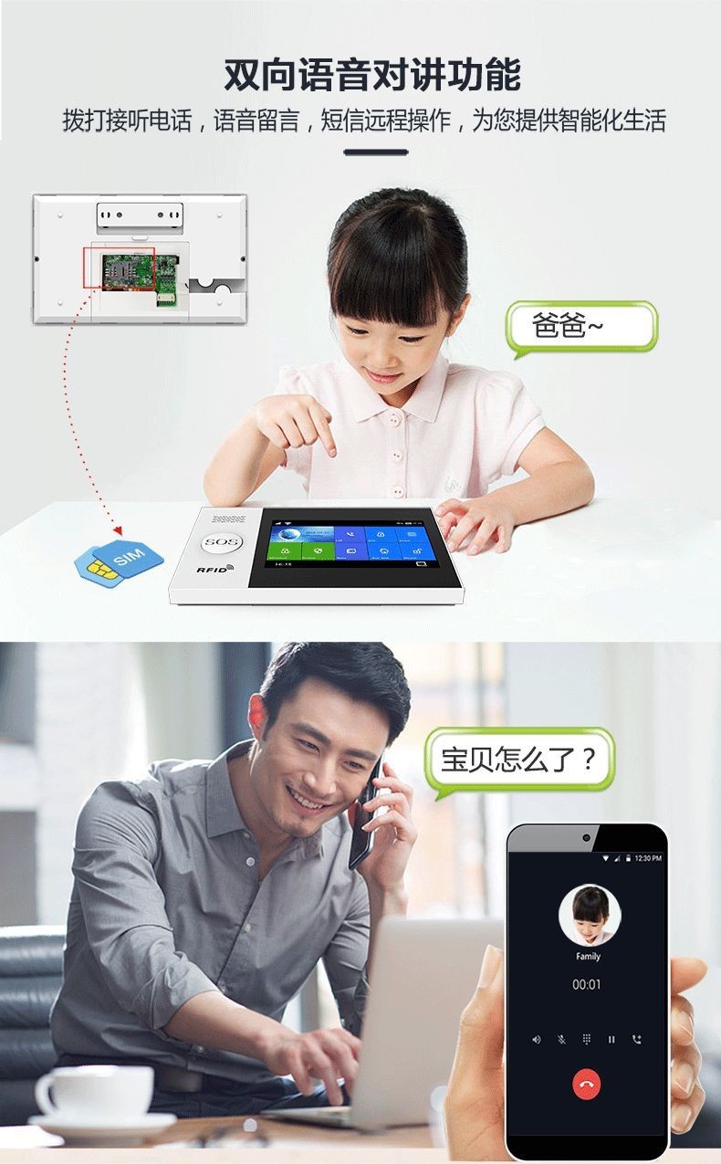 双网模式WIFI+GSM/4G全触摸屏智能报警系统