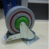①欧规底板,脚架采用特别结构设计,特高荷重、3.5mm板,转动灵活,双刹制动,适用于中、重型台车。
