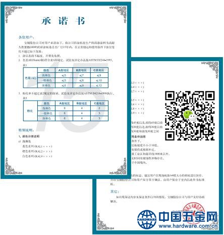 正宗的氟碳彩钢板,双面镀铝锌达到150克以上,或是双面热镀锌达到220克以上,正面涂层5+20um,反面5+6um以上钢厂一般可承诺20年的免维护使用质量,也就是在20年内不脱漆,不掉色,不龟列,不粉化,一般的环境氟碳彩钢卷使用30-40年是没问题的。