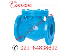 英国CAMERON卡麦隆进口铸铁旋启式止回阀(imported iron swing check valve)的功能是用来防止管路中的介质倒流。进口铸铁旋启式止回阀属于自动阀类,启闭件靠流动介质的力量自行开启 或关闭。止回阀只用于介质单向流动的管路上,阻止介质回流,以防发生事故。